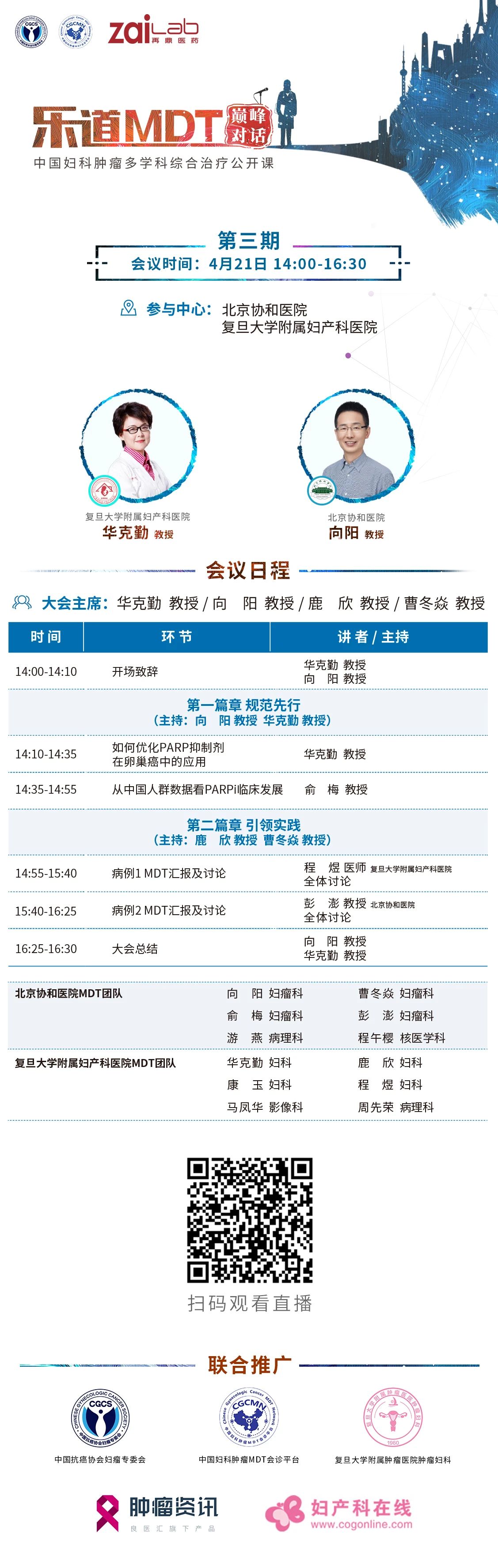 2021年4月21日下午14:00-16:30,“中国妇科肿瘤MDT巅峰对话2021”第二十三场线上会议将正式开启,本场活动特邀北京协和医院与复旦大学附属妇产科医院的妇科肿瘤MDT团队巅峰连线。会议首先由华克勤教授与俞梅教授分别做《如何优化PARP抑制剂在卵巢癌中的应用》、《从中国人群数据看PARPi临床发展》的专题分享,随后双方MDT团队针对真实病例进行MDT解读和探讨。