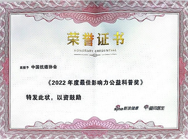 协会积极与权威媒体平台建立战略合作,建立了学习强国、科普中国、新华网客户端、人民日报客户端、光明日报客户端等33家科普平台媒体矩阵,展示、交流肿瘤医学领域的新动态、新成果,分享癌症防治相关知识,提高公众防癌抗癌意识,积极为健康中国建设贡献力量。并于2022年度荣获新浪健康“2022年度最佳影响力公益科普奖”,获健康报“2022年度优秀宣传组织”荣誉称号。人民日报人民号和健康号累计关注量近3万人次,累计阅读量1800万+人次。光明日报号累计关注量7.8万人次,累计阅读量1400万+人次。