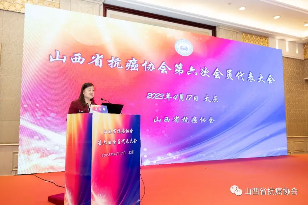2023年4月17日,山西省抗癌协会第六次会员代表大会在太原顺利召开。中国抗癌协会王瑛副理事长、山西省卫健委刘保升巡视员、山西省科协王继龙副主席出席会议并致辞,山西省抗癌协会历任老领导:赵震寰教授、王生虎教授、冯守山教授以及来自全省的200名会员代参加会议。经全体会员代表无记名投票选举,会议产生新一届理事会、监事会。会议由王晋芬秘书长主持。