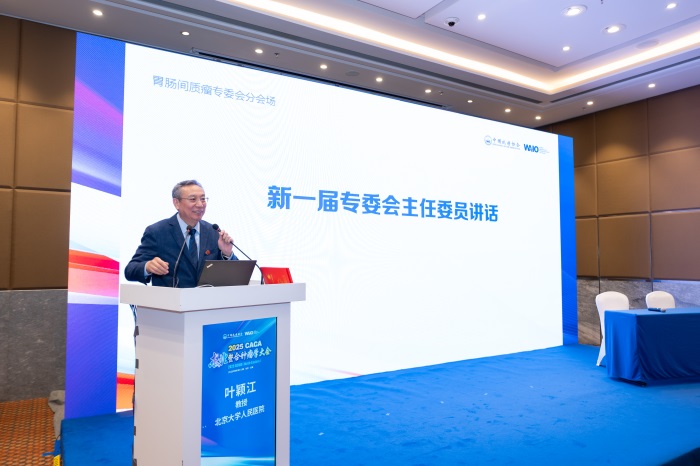 第三届专委会主任委员叶颖江教授发表任职讲话,感谢总会与专委会全体委员对新一届专委会领导小组的信任与支持,新一届专委会会在总会领导下,认真履行专委会的工作职责,将总会的要求与胃肠间质瘤罕见肿瘤特征相结合,推动胃肠间质瘤规范化与个体化诊疗在我国的积极开展。