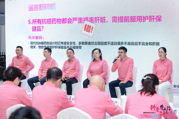 科普活动内容丰富多彩、形式多样。在“科普大咖说”环节,七位全国专家围绕乳腺癌患者关心的术后康复治疗、精准用药、院外康复新生态等议题,进行了专业讲解和答疑解惑。“谣言粉碎机”环节则通过线下医患面对面交流,及时廓清了患者常见的临床认知误区,强化了公众对乳腺癌“防筛诊治康”全流程管理的科学认知。此外,“CBCS患者教育小红书解读-前沿治疗篇”与“CBCS患者教育小红书解读-化疗篇”分别由马丁教授、汤琦教授完成授课,深入浅出地介绍了靶向治疗、免疫治疗、化疗及新辅助治疗等前沿知识,为患者带来了希望的曙光。现场还展示了由本地医护和患者代表表演的“康复八段锦”与“手鼓康复操”,生动体现了和谐互助的医患关系与积极向上的康复氛围,构成了乳腺癌整体防治的优质生态系统。