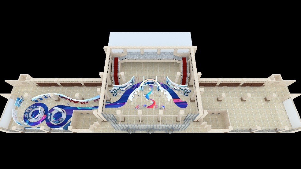 我们大量采用垂直布展方案,充分利用柱体结构,将其包裹成360度信息柱,在北侧区域,我们合理规划展示空间,将又限空间变为吸引人流驻足的成果秀场。这使得整个展区疏密有致,步步有景,最大化提升了空间的价值与参观效率。