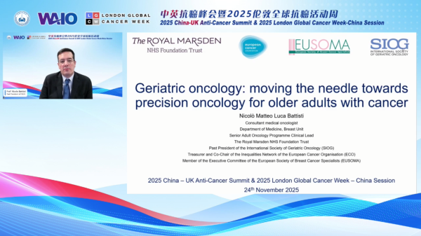 国际老年肿瘤学会前任主席、英国皇家马斯登医院乳腺内科顾问Nicolo Battisti 教授带来了“老年肿瘤学: 推动老年癌症精准治疗之路”的主题演讲。 Battisti 教授系统阐述了老年肿瘤精准治疗的新范式。他指出,面对全球老年肿瘤患者数量的显著增长,传统基于年龄的治疗模式已难以满足临床需求。因此, Battisti 教授强调应通过综合老年评估体系,从生理功能、共病情况、认知状态、社会支持等多维度实现患者精准分层。该评估模式可有效降低30%的严重不良事件发生率,显著改善患者生活质量。目前国际权威机构已推出系列评估工具与临床指南,建立多学科协作机制成为关键。未来需要进一步加强专业培训,推动精准医疗理念在老年肿瘤领域的深入应用,为这一特殊群体提供真正个体化的治疗方案。