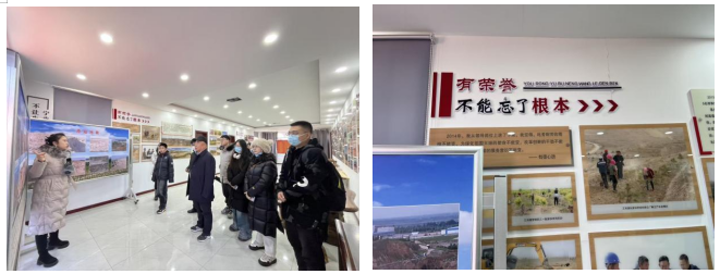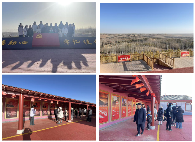 在讲解员的带领下,大家看到了现代化设施温棚,草莓立体种植与劳动实践教育基地的有机结合。沿着蜿蜒的红色教育步道,全体人员步行至“初心台”,聆听讲解员讲述王有德等劳模人物“生命不息、治沙不止”的感人事迹,深刻体会到“匠心”精神在生态治理与产业振兴中的生动体现。在红色文化长廊,大家依次参观“中国精神”“功勋人物”“中国英烈”“党的光辉历程”“四大板块,一幅幅图片、一段段故事,让初心使命在沉浸式学习中得到淬炼升华。
