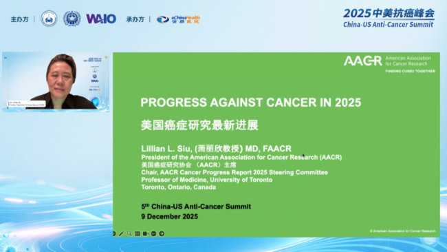 在主题演讲环节,美国癌症研究协会主席 (2025-2026)、玛格丽特公主癌症中心资深肿瘤内科医生、一期临床试验项目主任兼精准基因组学讲席教授萧丽欣教授介绍了“美国癌症研究最新进展”,重点回顾了美国在降低癌症死亡率、扩大幸存者群体方面取得的成就,并展望了免疫治疗、ADC药物及前沿技术推动的未来方向。