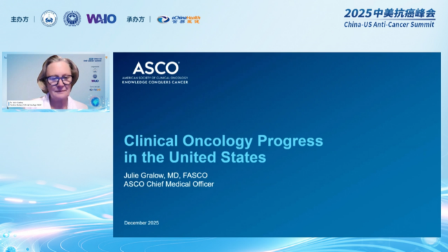 美国临床肿瘤学会(ASCO)执行副总裁兼首席医疗官、美国华盛顿大学医学院肿瘤内科名誉教授及全球健康学兼职教授Julie Gralow教授则分享了 “美国临床肿瘤学进展”,系统介绍了ASCO视角下的年度临床研究突破、诊疗模式创新及患者护理改善的最新趋势。