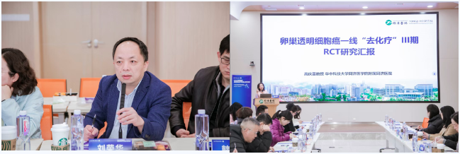参访结束后,会议进入学术专题环节,由华中科技大学同济医学院附属同济医院刘荣华教授进行主持。本专题环节由华中科技大学同济医学院附属同济医院高庆蕾教授进一步就《卵巢透明细胞癌临床研究方案及进展》进行分享,主要围绕研究者发起的临床研究,对研究方案进行介绍。