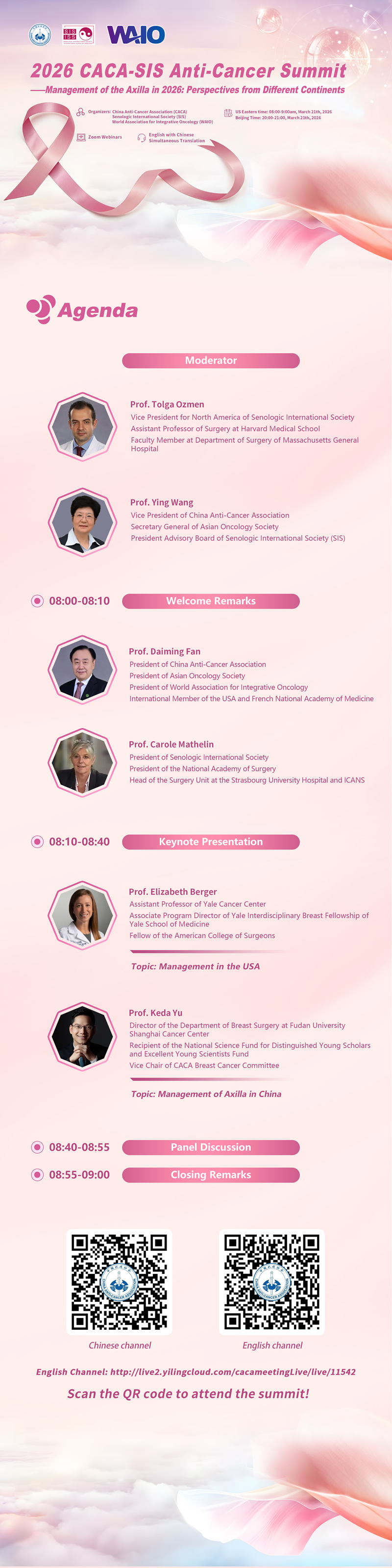 China Anti-Cancer Association (CACA), Senologic International Society (SIS),World Association for Integrative Oncology (WAIO)