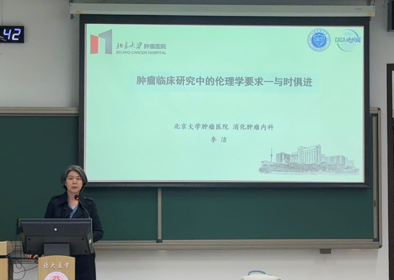 2026年3月24日,在中国抗癌协会指导下,由中国抗癌协会医学伦理学专业委员会和指南进校园委员会联合主办的CACA进校园专场活动,在北京大学医学部顺利开展。本次活动依托北医研究生课程《肿瘤临床研究的实践(2026春)》,以“肿瘤临床研究中的伦理学要求——与时俱进”为主题,面向北医研究生开展专题授课,切实推动CACA指南深入高校课程、扎根北医校园。